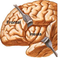 La ínsula que se ubica en la parte lateral y profunda de los límites del lóbulo frontal y el parietal, juega un papel muy importante en las emociones y la autocrítica, la región posterior de esta zona percibe el estado corporal y las sensaciones viscerales es más activa en la lujuria que en el amor. La región anterior de la ínsula se forma ideas abstractas sobre el cuerpo y se activa de manera importante con el amor.