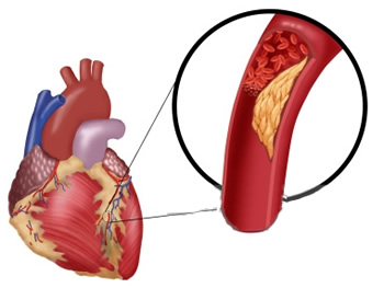 El infarto ocurre como resultado de una placa de grasa en una arteria, que se rompe y con el coágulo que genera obstruye el paso de la sangre a toda una zona que quedara privada de líquidos, nutrientes y oxígeno vitales para llevar a cabo las funciones normales de ese órgano o tejido.